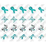 Teal Awareness Ribbon Nail Decals - Set 2