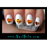Orange Camo Heart Nail Decals - OCH