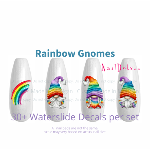 Rainbow Gnome Nail Decals - Pride Gnome Nail Art, Nail Stickers